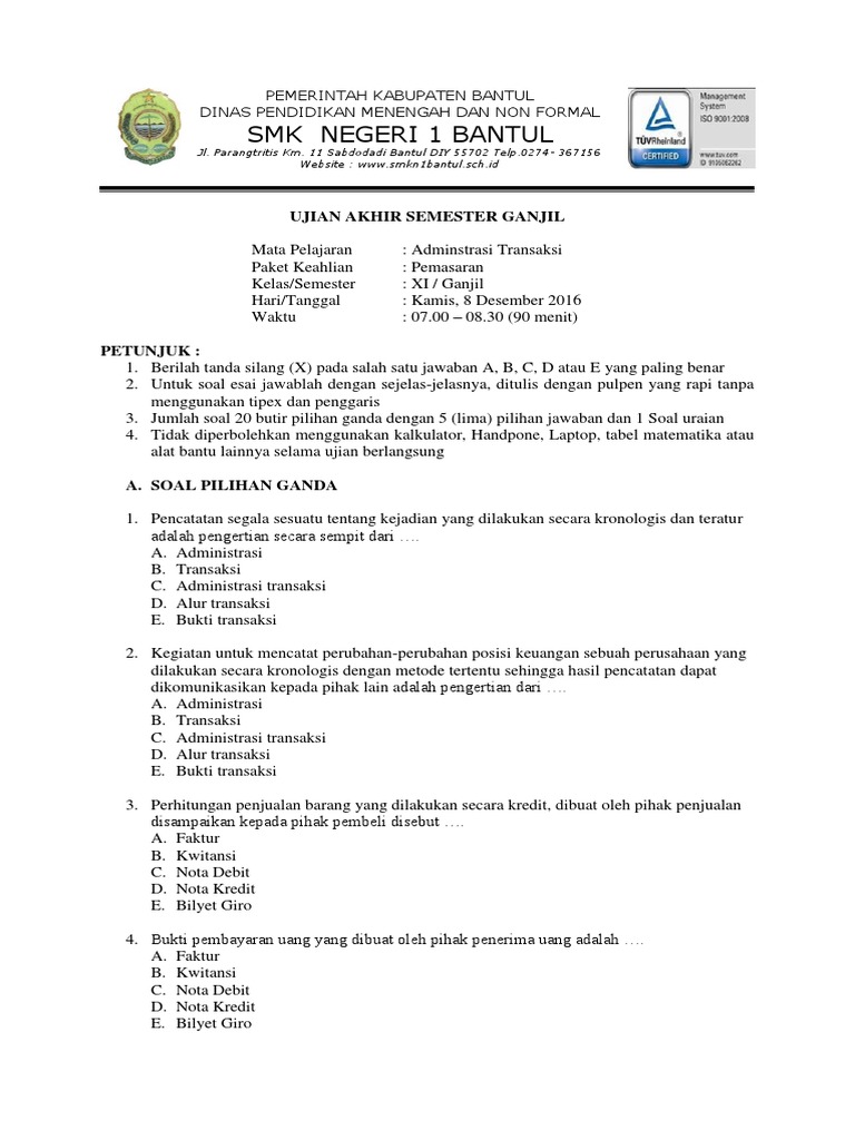 Soal Ulangan Xi Pdf from imgv2-1-f.scribdassets.com We did not find results for: Check spelling or type a new query. Maybe you would like to learn more about one of these? Soal dan jawaban administrasi transaksi kelas 12.